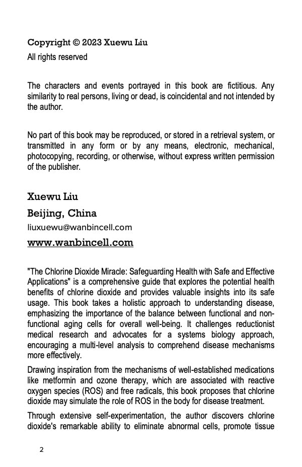 “The Chlorine Dioxide Miracle: Safeguarding Health with Safe and Effective Applications” is a comprehensive guide that explores the potential health benefits of chlorine dioxide and provides valuable insights into its safe usage. This book takes a holistic approach to understanding disease, emphasizing the importance of the balance between functional and non-functional aging cells for overall well-being. It challenges reductionist medical research and advocates for a systems biology approach, encouraging a multi-level analysis to comprehend disease mechanisms more effectively.