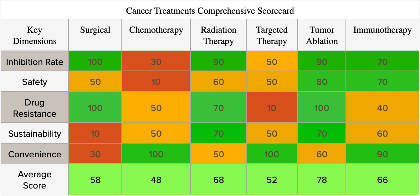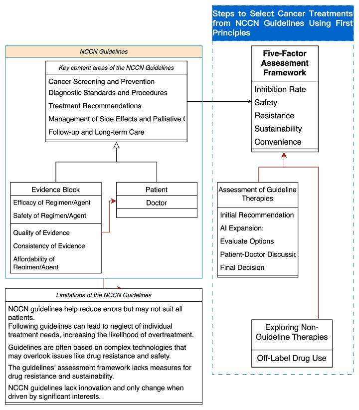 We have revolutionized the analysis model and evaluation framework for cancer treatment by adhering to core principles. Our innovation goes beyond traditional cancer treatments outlined in the NCCN guidelines, focusing on the selection process and integrating cutting-edge therapies.