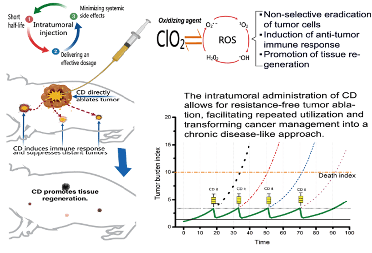 I strongly recommend that cancer patients with no other treatment options perform intratumoral injections of chlorine dioxide at home to ablate some tumors.